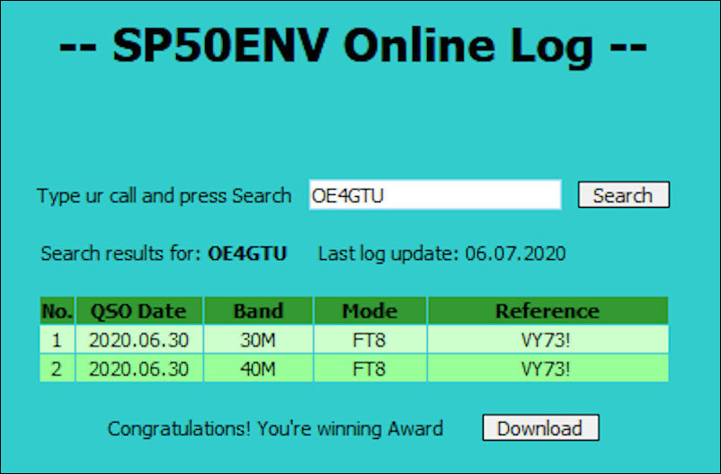 Rules: To get the anniversary award you have to make 1 QSO with SP50ENV. Special event call sign SP50ENV is to celebrate 50th anniversary of amateur radio by Toni DL1EKO also SP9ENV.