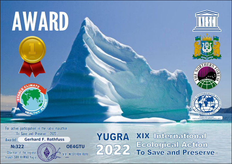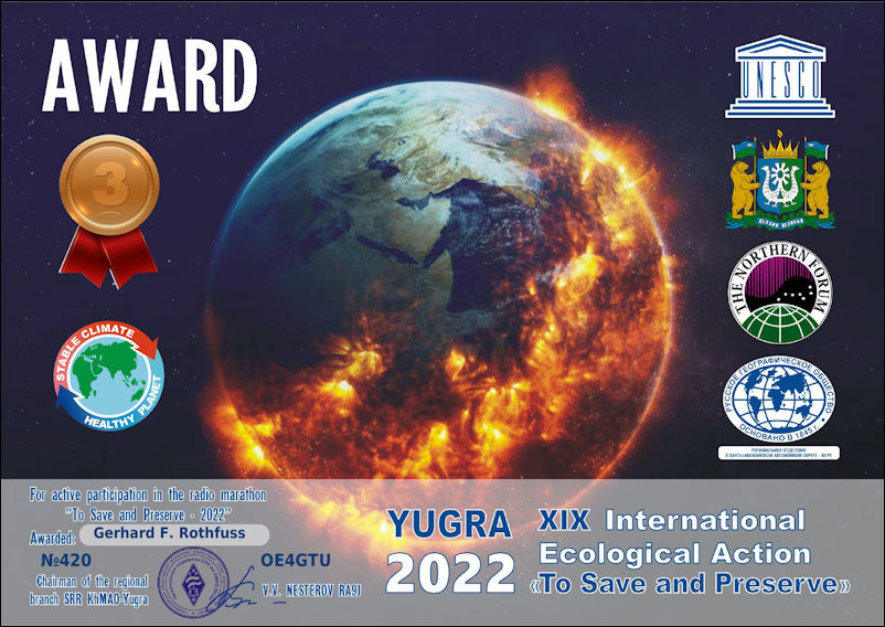 Um ein Diplom der 1.Stufe (Gold) zu erhalten müssen Sie 160 Punkte erreichen.Ein QSO mit der Sonderstation R19UGRA des Radiomarathons ist obligatorisch.