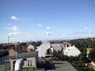 The hy-gain AV-640 'PATRIOT' was set up with my friend OE3ZK within a day. One day a storm brought it down. Carefull inspection showed: The tube Our flat roof, around 15m above ground, provides a perfect counterpoise. The antenna works surprisingly well. The picture shows only the top section, the view to the lower half is covered by the rail. NEVER mount a AV-640 without any guying ropes. The trap-less design of the AV-640 is impressive. Only the original hose clams |
