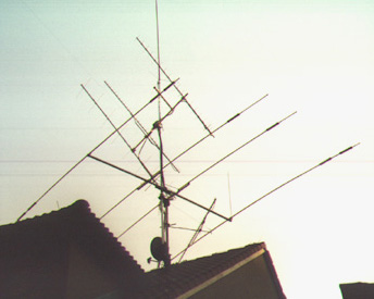 | In Europe large antenna towers are more difficult to errect, due to environmental restrictions. It is essential to have a very effective antenna system to cover all bands and operation modes you want to be active. In my case it is a 4 Element beam antenna covering 20m,17m,15m,12m,10m bands with abt. 7dbd gain. For satellite operation ( OSCAR10 ) and SSB-DX cross yagis for 144mc and 435mc offer horizontal and vertical polarisation and 10 to 16 dbd gain. Azimuth and elevation rotators turn the yagis in ervery position. | |