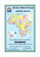 In June 2002 I have been awarded certificate # 48 for 6 Meters WAZ (Worked All
