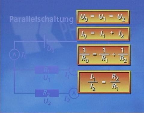 Vier Formeln für die Parallelschaltung zweier Widerstände.