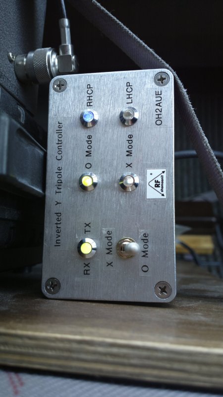 - photo of an experimental Two Phase Fed Parasitic Tripole with Quadrature Hybrid + 30 degree Delay Feed Network (RHCP, ellipticity less than 1 dB) (added 21.11.2015)