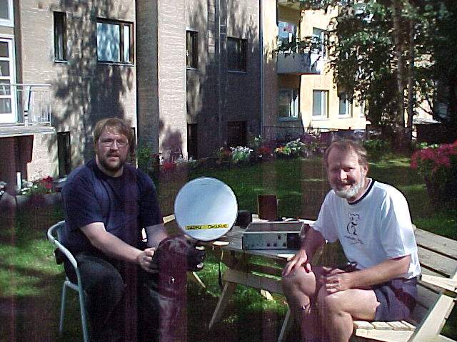 Doug, VK4OE had his triple band rover rig with him when he and his wife Ruth visited us in August 2000. We had a sked with OH2AXH on 2.3 and 10.368 GHz from my favourite rover hill in KP20KG (my home square at this resolution...!)