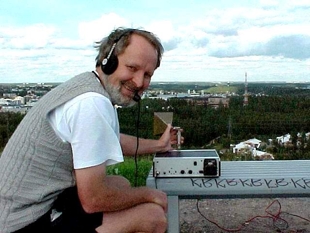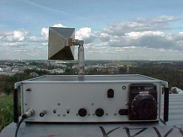 - Doug beaming (48k) his 10 GHz signal towards OH2AXH in KP20OK some 30 km away. Signals are 59 on 10 GHz.