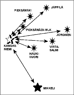 Harjoitus Etelä-SavossaPidimme palaverin 25.3. Pieksämäellä Primatelin tiloissa. Paikalla oli OH1VR kertomassa harjoituksen taustoista ja selventämässä joitain yksityiskohtia. Osallistujia oli Mikkelin, Savonlinnan ja Pieksämäen seuduilta: OH4RD, OH4FB, OH4MCV, OH4HLO, OH4HKX, OH4QJ, OH4HLJ, OH4GIN, OH4KRX, OH4RW, OH4TY, OH4JPV ja OH4MFA. Etelä-Savon alueen johtoasemaksi tulee Mikkeli. Alue jaetaan kolmeen soluun: MLI, SLN ja PMK. Pieksämäen solu sisältää seuraavat kunnat: Haukivuori, Joroinen, Jäppilä, Kangasniemi, Pieksämäki, Pieksämäen MLK ja Virtasalmi. Emme ota vielä huomioon tulevaa kuntaliitosta. Pieksämäen soluNäillä sivuilla keskitytään Pieksämäen soluun.