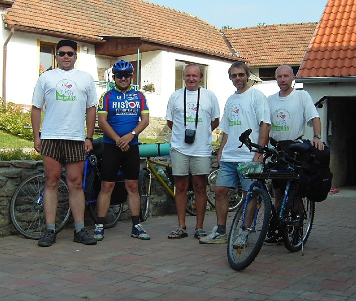 Tak už nás zbylo jen pět. Jirka OK1DXK se pak ráno vrací do Budějovic, takž už jen čtyři a navíc po cestě už žádné tisícovky - rozhodujeme se redukovat plán etapy na přejezd do QTH NR Bechyně na chatu OK1AYU. Každopádně ještě děkuji OK1FZM a OK1HH, kteří drželi ubytovací pohotovost na zbývajících záchytných bodech po trase, snad příště... Trasa Vede přes Netolice (skvělá zmrzlina v cukrárně na kraji města), NR Vodňany kde navigační chybou trochu bloudíme a absolvujeme tak malý Triatlon, Číčenice - zastávka v hospodě a tip na skvělé koupání, pak Temelín, Týn nad Vltavou a končíme NR Bechyně- celkem až nato bloudění pohodových 60 km po rovině |