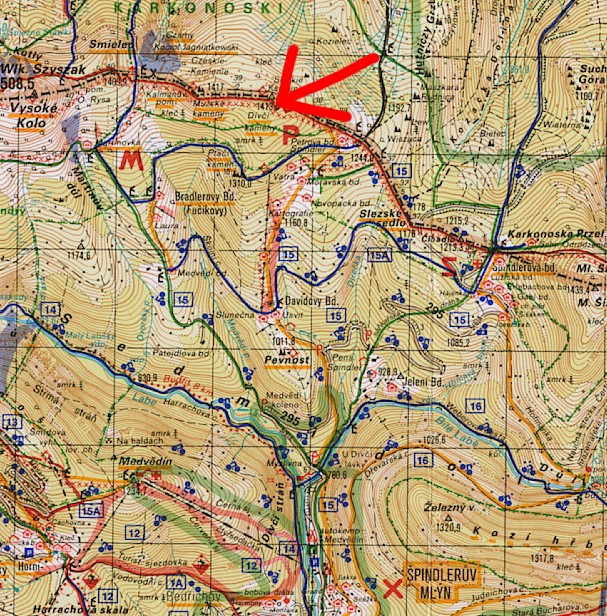 Na Dívčí kameny jsme dorazili po červené značce od Špindlerovy