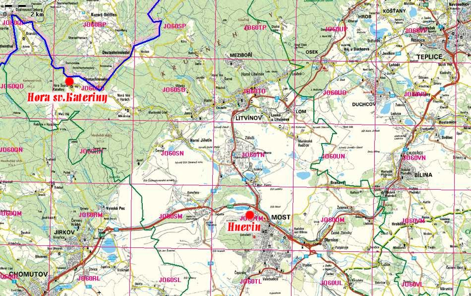 Sezónu 2000 jsme zahájili Hněvínem v Mostu. Velmi hezká a upravená rozhledna, pohodlně přístupná autem. Trochu nevýhodou je poměrně malá nadmořská výška. Rozhledna je prakticky součástí města Most. Přístup velmi podrobně a přesně popsal Petr, OK1DPQ. Zde je jeho návod: Po příjezdu od Prahy se dat vpravo odbočkou ukazující směr Most. Po hlavní silnici přejet nadjezdem původní dvouproudovou silnici a na kruhovém objezdu vpravo. Jet stále rovně podél tramvajových kolejí asi tak 1 až 1,5 km přes 2 křižovatky až k benzínové pumpě Shell, kde se přes kruhový objezd dát vzhledem k příjezdu vlevo. Pak se zhruba 2. nebo 3. dát vpravo (vedou tam obě). Asi nejvhodnější je ta, která je těsně před velikou budovou vypadající jako škola (ostatně je to gymnázium). Tou asi tak 500 metrů místu, kde začne stoupání a nebo kde se může nechat v nouzi auto. Nahoru by to bylo odtud tak 1,5 km. Je lépe se v těchto uličkách na cestu zeptat místně. |
