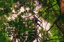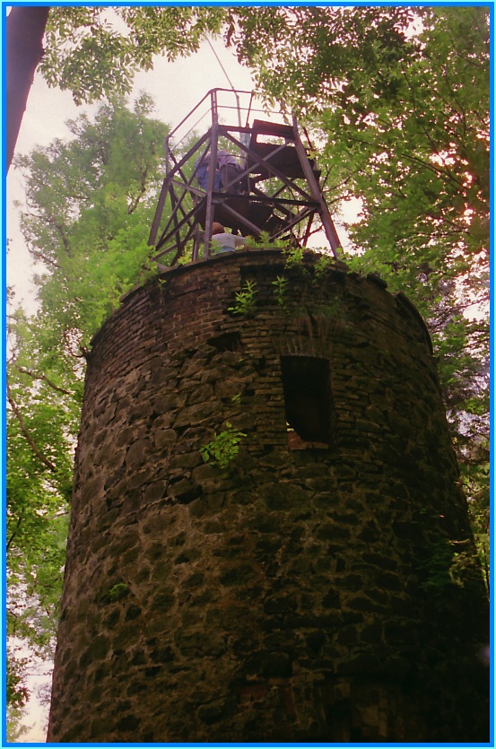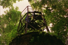 Rozhledna pouze pro otrlé. A to hned ze dvou důvodů. Jednak je dostupná pouze pěšky, nejlépe po modré turistické značce - odbočky k rozhledně, a za druhé, na rozhledně silně podepsal zub času. Korozi jsem se (ne příliš úspěšně) pokusil zachytit na někerých obrázcích, ve skutečnosti to vypadalo ještě hrozivěji. Nicméně mne rozhledna; unesla i s vybavením (já + TRX) což dohromady představuje více než 115 kg. Podíl váhy TRX je zcela zanedbatelný :-). Z této rozhledny toho do dálky moc neuvidíte protože okolní stromy ji převyšují. Občerstvení jen z vlastních zdrojů. Při druhé návštěvě jsme přišli s Petrem OK1IGO přišli podstatně lépe vybaveni, TRX s 40ti W OUT udělal své. |