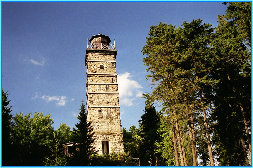 ![]() Tisovský vrch ![]() Tisovský vrch ![]() ANT "vidí" přez špičky stromů ![]() pyrmida z antény pod rozhlednou ![]() XYL s anténím stožárem |