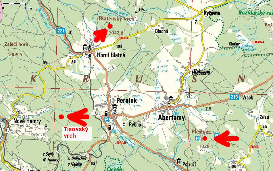 Tisovský vrch o je jedna z velmi hezkých rozhledem v této oblasti. K jejímu půvabu přispívá i to, že je nepřístupná autem a nebýt perfektních navigačních údajů od OK1JLX asi by jsme se prošli podstatně dále. Chodí to odtud perfektně, jen se na nás během vysílání sesypal oblak létajících mravenců. Repelent sebou !!! Lokátor vyčtený z tabulky - JO60IH který jsem udával při spojení je zjevně nesprávný, jenže jako na potvoru jsem GPS zapomněl v autě a jít 2 km se mi nechtělo. Pravděpodobný lokátor vyčtený následně z mapy je JO60JI. |