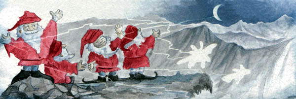 V prastaré říši Dolomitů zpívají ptáci tuto báj. O zemi hlubokých lesů, průzračných jezerech a lukách posetých pestrobarevnými květy. O zemi kde panovalo štěstí a klid do chvíle, než se syn zdejšího krále oženil s měsíční princeznou. Oba se nadevše milovali, jen princ nesnesl třpytivé světlo měsíce a jeho choť zmírala při pohledu na šedost skal a temné lesy. Na společný život na zámku nebylo ani pomyšlení. On se bál o svůj zrak a ona hynula touhou po svém domově. Princezně chyběla jasná zář měsíčních paprsků a ačkoliv svého chotě velmi milovala, vrátila se zpět ke svému otci. Jednoho dne, když princ samoten, toulal se hlubokými lesy, potkal skřítka i vyprávěl mu svůj smutný příběh. Po té co trpasličí král nešťastného manžela vyslechl, přislíbil mu pomoc. Obleče říši do třpytivého lesku, výměnou však chce se svým lidem usadit se v jeho lesích. Jak bylo ujednáno, tak se i stalo. Následující noci chytali skřítci měsíční svit. Předli a tkali, halili skály do závoje z bledého třpytu měsíce. S návratem měsíční princezny v říši opět zavládlo štěstí a láska.