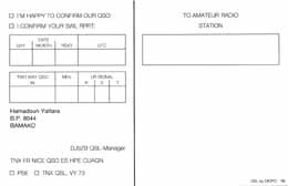 QSL cards are printed in a standard size of 140 by 90 mm, printed on white coated paper (carton 300 g), front size is laminated. QSL cards could be printed also in double format of 180 by 90 mm (landscaped) or 140 by 180 mm (portrait) folded in the center (two inside sides are printed black and white).