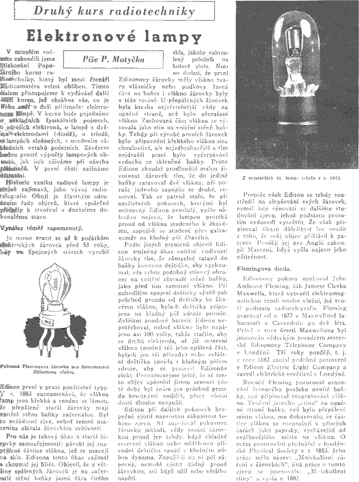 Píše se rok 1937 a Pravoslav Motyčka píše pro časopis Radioamatér kurs radiotechniky na pokračování.