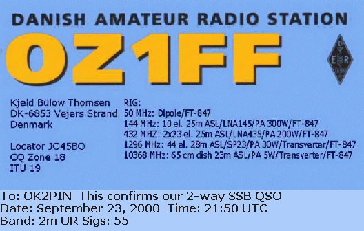 | 23-SEP-'00 | 21:49 | OZ1FF | 55 | 55 | JO45BO | 962 | B, eC |