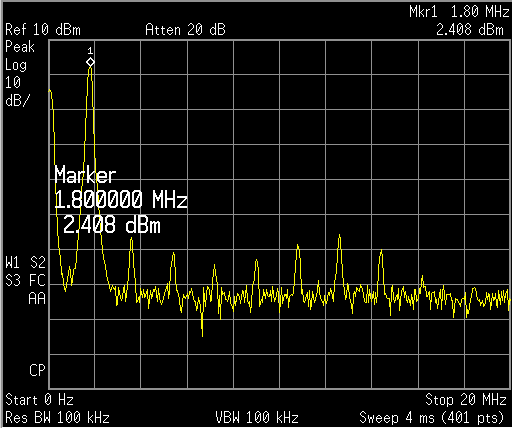 And finaly on last pictures you can see measured signal spectrum on the DDS output, after being amplified.