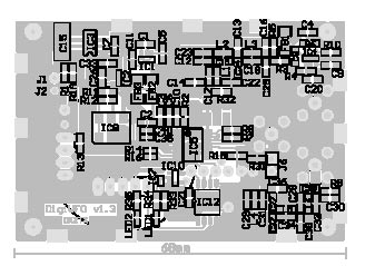 For the DigiVFO PCB in the pdf format look here This print is from components side and is in 1:1 ratio.