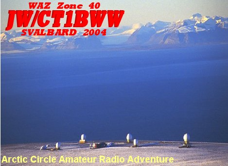 2004 From June 7Th to 14Th operating as JW/CT1BWW from Longyerbien Svalbard Island at SPITZBERGEN Archipelago at 78 º North (North Arctic Circle Polar) | |