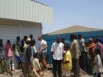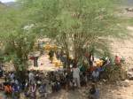 Refugee people looking for some shadow, to inspect the