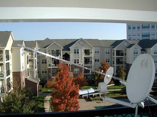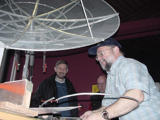 The dish at the left is a 84cm with G3RUH patch antenna and DB6NT downconverter