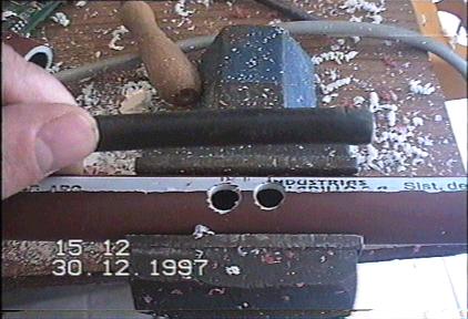 This is the second support being prepared for connection to the outer loop. These holes should be on one side only!