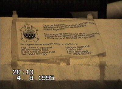 Lado de la cámara: aparentemente cayó sobre este lado al suelo. El golpe hace sospechar que el hilo del paracaidas se rompió (corresponde con los datos de telemetría que indican una caida mucho mas rápida desde los 8000 metros (!)