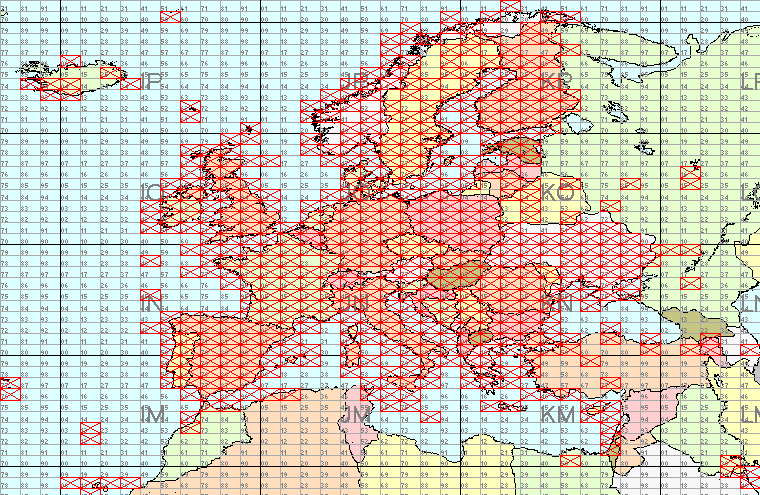 Main squares worked by OZ1IEP on 6 m. From 01/01/1900 to 14/08/2021