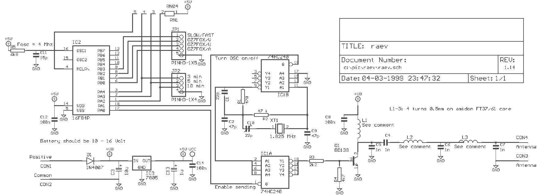 The transmitter is excited by a PIC16C84 which contains a program for transmitting