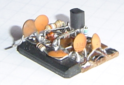8. Solder transistor - base island 6 with log lid, emitter island 12 e colector island 13.