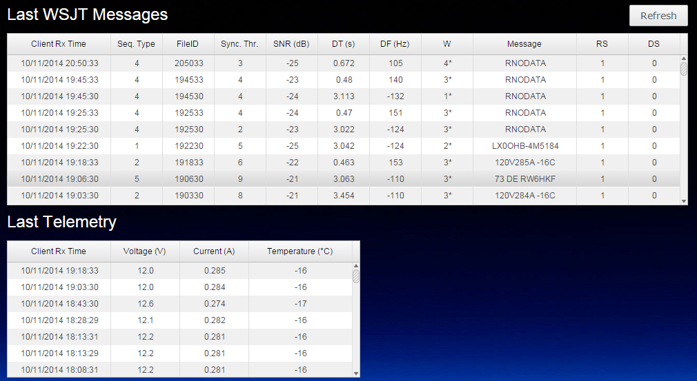 Dados recebidos no dia 24-10-2014 a 257.00 km de distancia da terra !: