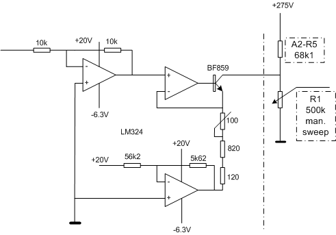 high-voltage is done by shunting the manual sweep pot-meter with a