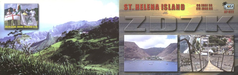 7 ZD7K - CW - SSB Year: 2001 Band: 10, 12, 17m Specifics: IOTA AF-022 mainland Saint Helena |
