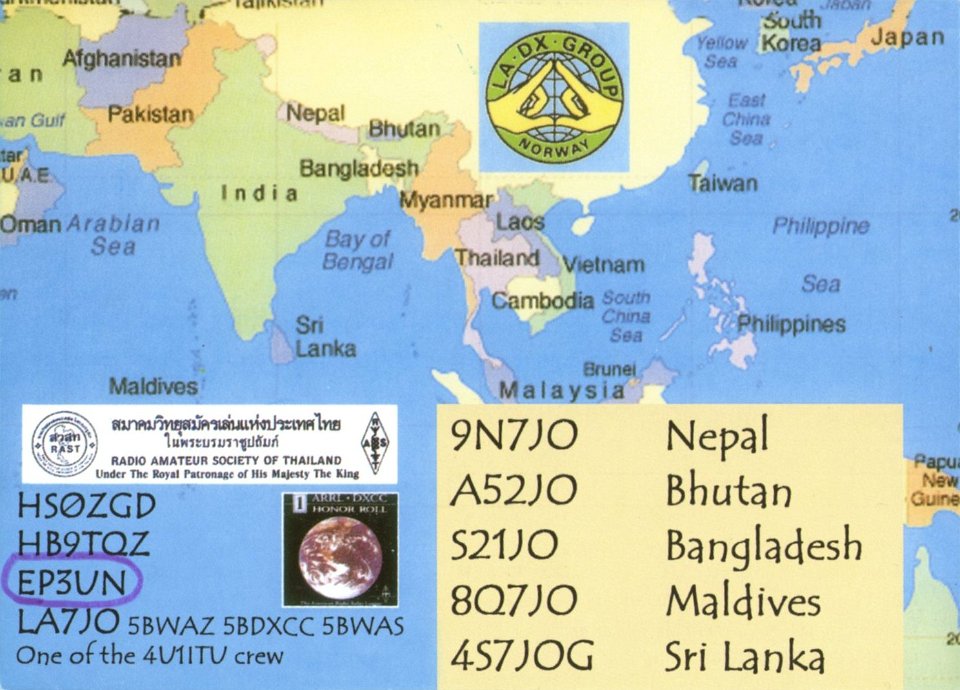 7 EP3UN - CW - SSB Year: 2002 Band: 12, 15, 17, 20m |