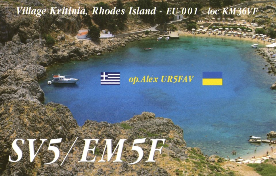 6 SV5/DL3DRN - SSB Year: 2005 Band: 17, 20m Specifics: IOTA EU-001 Rhodes (Rodos) island |