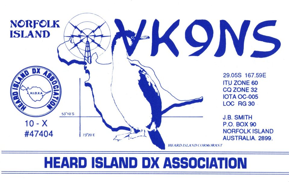 6 VK9NB - SSB Year: 2004 Band: 20m Specifics: IOTA OC-005 Norfolk island |