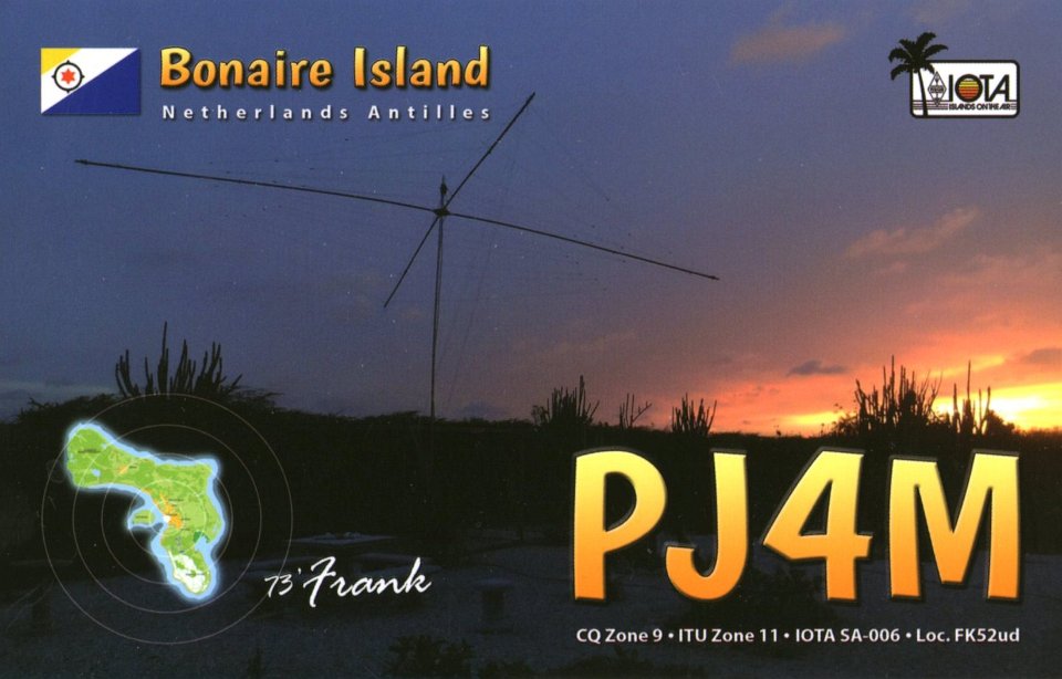 4 PJ4Z - SSB Year: 2012 Band: 15m Specifics: IOTA SA-006 Bonaire island |