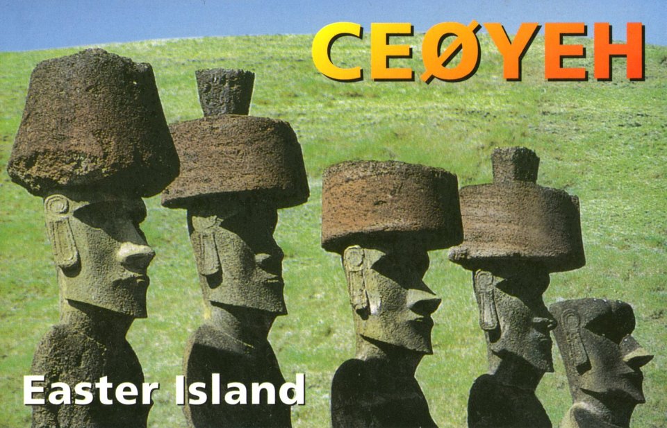 5 3G0Y - CW - SSB Year: 2001 Band: 10, 12, 15, 17, 20, 30, 40m Specifics: IOTA SA-001 Easter island |