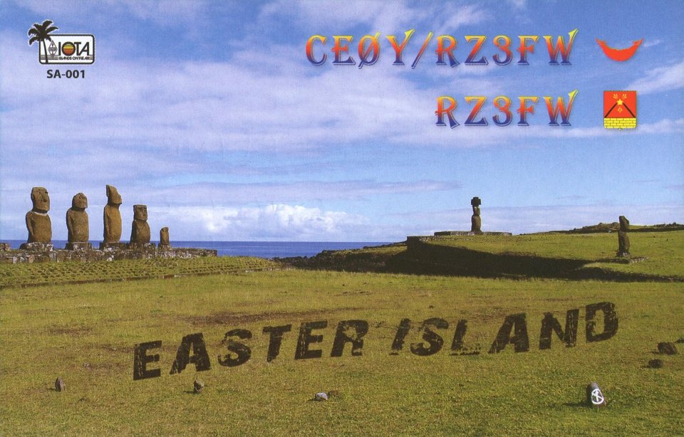 9 CE0Y/RZ3FW - CW Year: 2015 Band: 12, 17m Specifics: IOTA SA-001 Easter island |