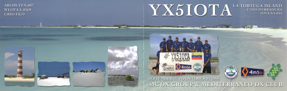 8 YW5IOTA - CW Year: 2006 Band: 17m Specifics: IOTA SA-044 La Tortuga island |