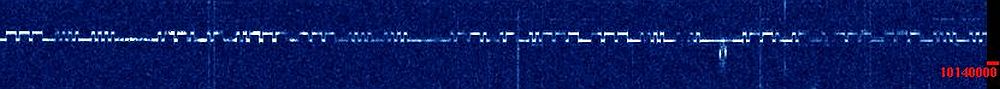 The 1 mW low shift - 10 mW high shift beacon signal received by the grabber of IK1WVQ - MAURO (JN44cb).