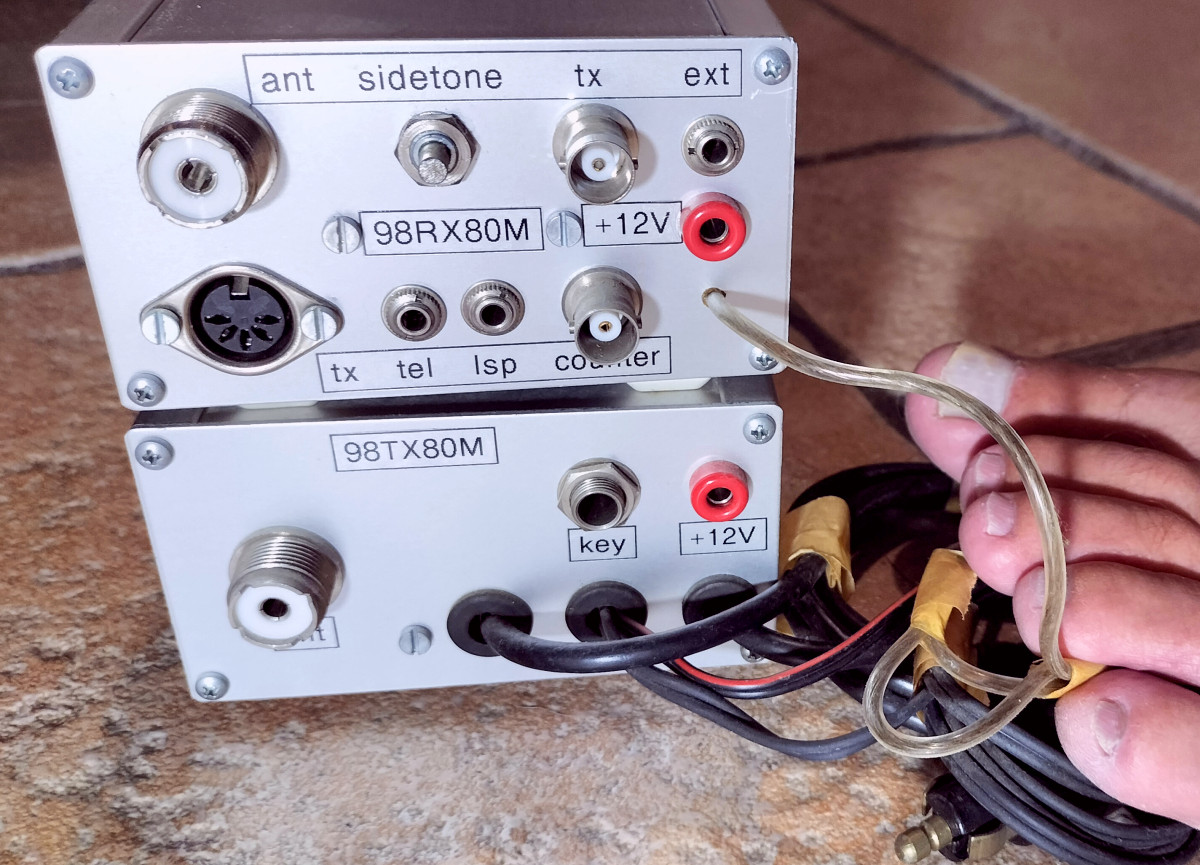De ontvanger is in een aparte behuizing geplaatst omdat de zender al eens eerder gemaakt was voor een ander projekt. Alles moest met kabels en pluggen worden doorverbonden, HF signalen via coax en BNC connectoren, andere bekabeling via afgeschermde audio kabels en pluggen. Normaal bouw je alles natuurlijk in 1 kast.