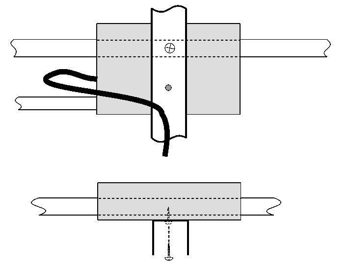 the tubing. A larger hole (8mm) is drilled through one wall of the tubing and a 2mm hole is drilled in the opposite wall. The reason for the 8mm hole is to allow a screwdriver access to tighten the element-to-Gamma-arm screw. After fitting and testing, the 8mm hole can be filled with putty or simply taped over with weatherproof tape.