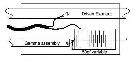 The extra things which must be done to the Driven element are holes for the Gamma arm must be drilled in the 12.5mm tubing. These holes allow connection of the Gamma arm by a screw inside