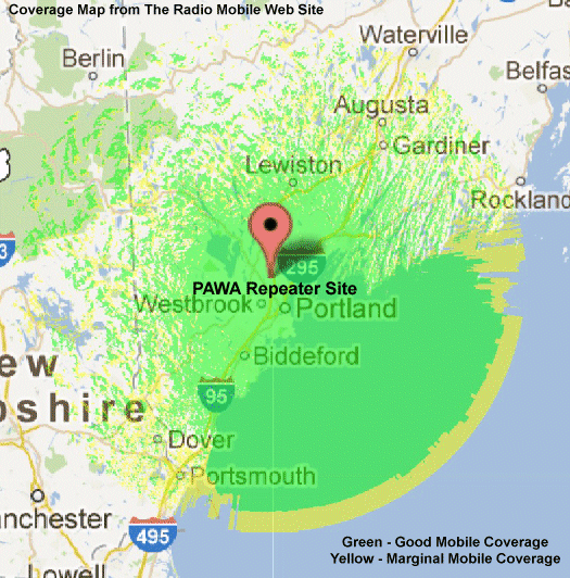 | Portable Coverage Spread (plotted from a radio coverage web site) | |||||||||||||||||||||||||||||
