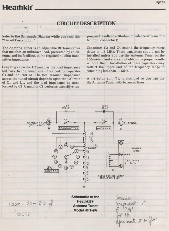 Nesta construção optamos pelo tipo CLC ou em "T", utilizamos dois capacitores variaveis de recepção que comporta até cerca de 30W.