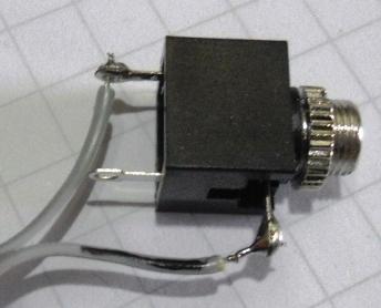 2d. Soldar extensão de cabinho duplo de flat cable (cerca de 15cm) na saida marcada "FONES" da placa para um conector P2 jack banana femea miniatura mono (não fornecido no kit).