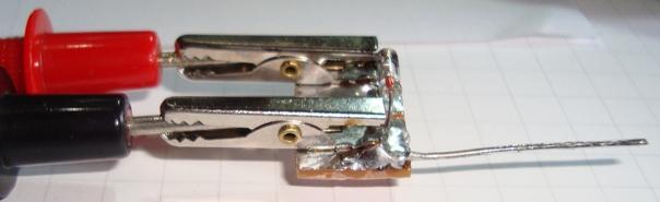 Foram feitos dois furos de 1,5mm para fixar a placa e aterrar, um destes furos aparece na foto do lado esquerdo da plaquinha logo acima do diodo, o outro furo esta oculto e fica atraz do trimer.