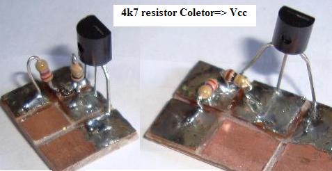 4.Soldando o resistor de 4k7 entre coletor e Vcc