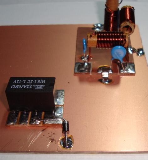 Ligando a antena ao Rx, capacitor de 100nF entre LPF e o modulo rele, ainda soldar terminal do rele a terra (lado direito daconexão do capacitor).